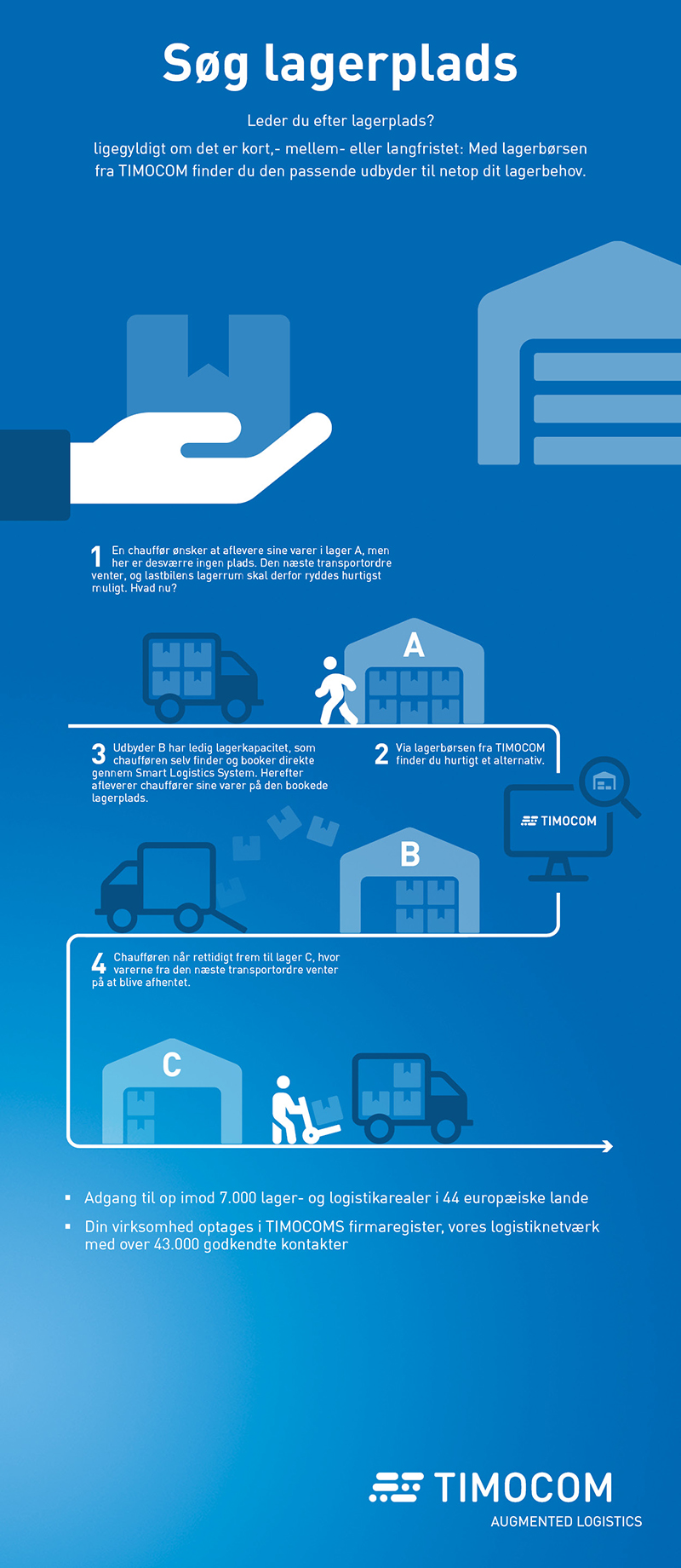 - Din virksomhed optages i TIMOCOMS firmaregister, der er vores logistiknetværk med over 55.000 godkendte kontakter